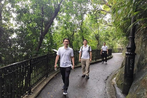 中建澳門公司在澳門松山公園組織環山野外定向活動,活動期間突降暴雨,大家毫不畏懼,在雨中完成既定任務,成功到達燈塔廣場。