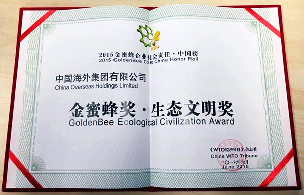 (2016年6月13日)中國海外集團有限公司(以下簡稱「中國海外集團」或「集團」)於《WTO經濟導刊》主辦的「2015金蜜蜂企業社會責任.中國榜」活動中獲頒「金蜜蜂.生態文明獎」 麻豆影视,以表揚集團在履行企業社會責任的努力和保持生態文明的卓越表現。